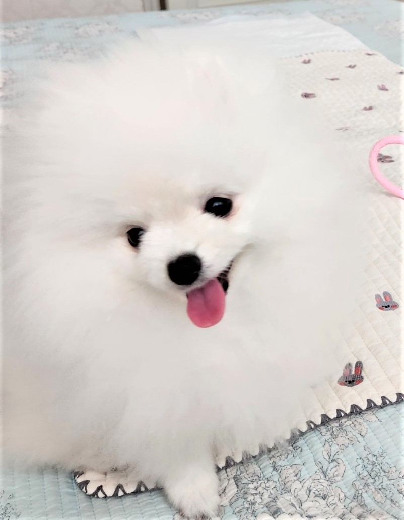 처음에 뽀미를 입양했을 때 올 화이트로 솜뭉치 같은 하얀색이었는데 등과 귀 뒷부분이 약간 갈색으로 조금씩 변화하고 있는 느끼게 된 것은 생후 약 6개월차 쯤이었습니다. 입양 할 때 올 화이트가 너무 깜찍하고 귀여웠는데 입양할 때 털 색깔이 지금과 같이 부분적으로 다른 색이었다면 선택이 달라졌을 수도 있었을 것 같습니다.